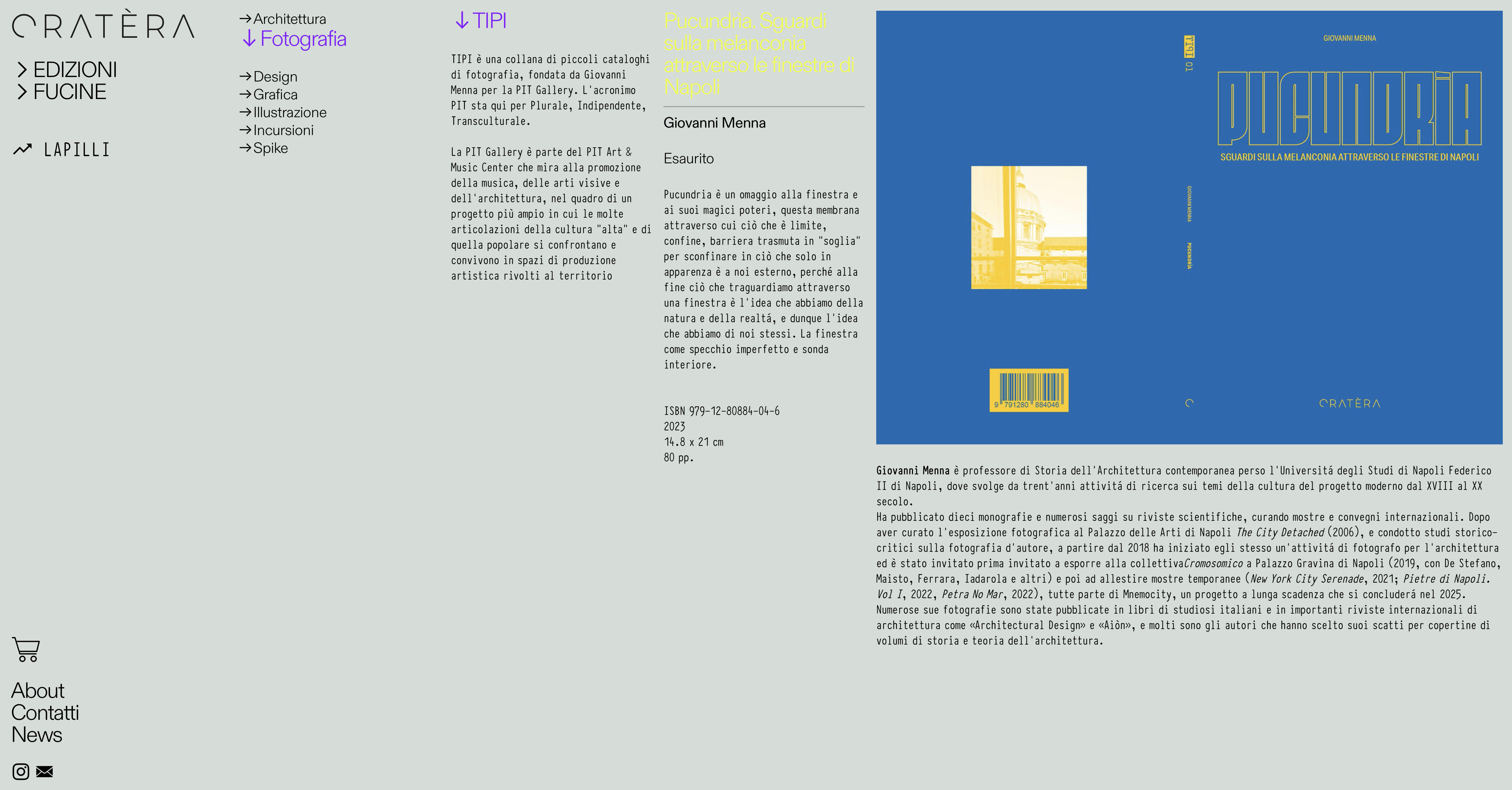 Design del sito web della casa editrice Cratéra